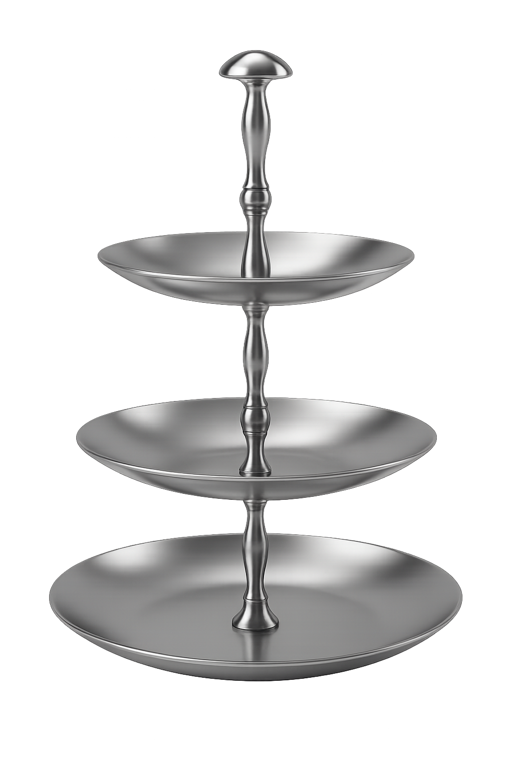 Katlı modellerin tepesindeki boğumlu metal kulp, standın kolayca taşınmasını sağlarken tasarıma klasik bir şıklık katar. Düz tabak yüzeyi, ikramlıkların kaymadan durmasını sağlar.