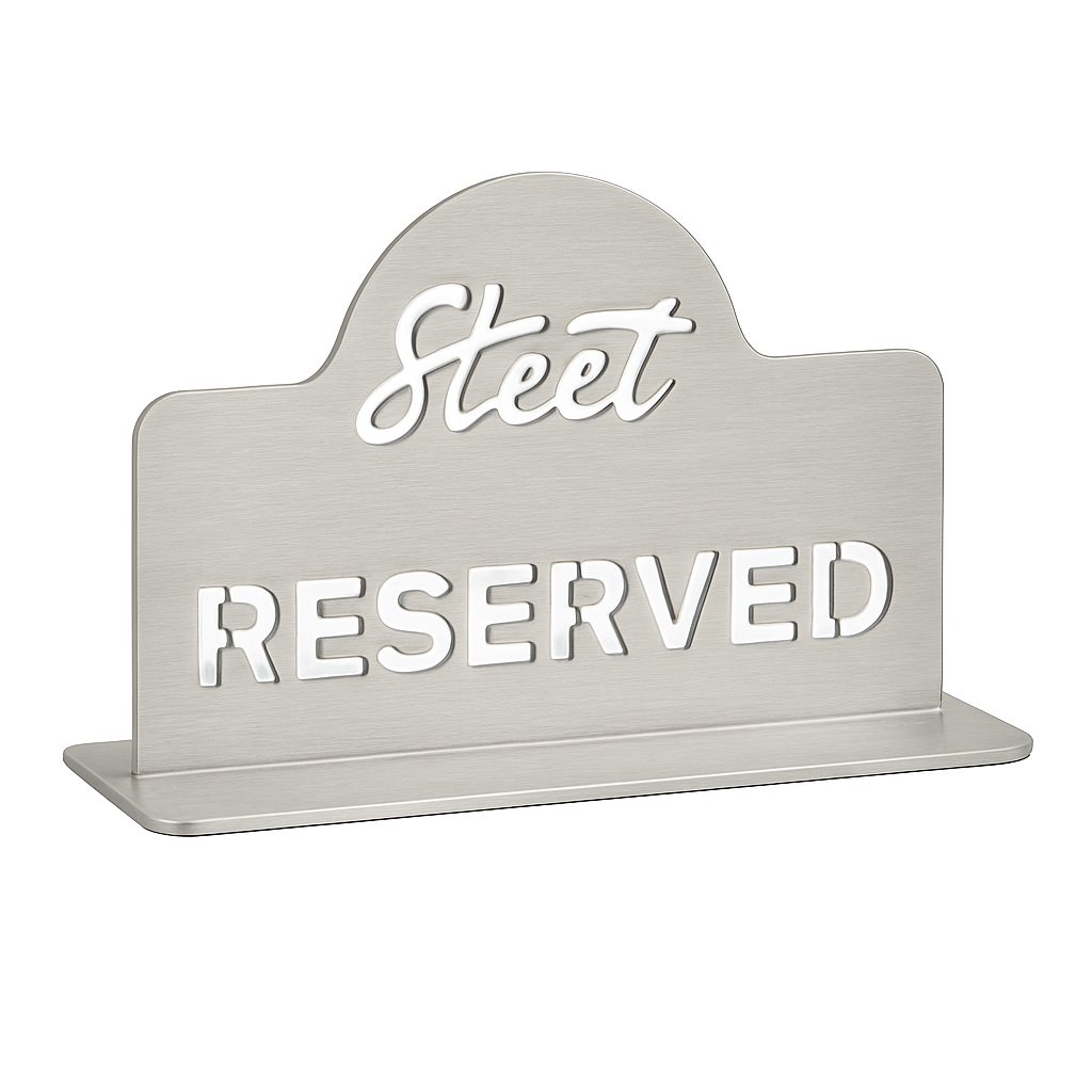 Masaüstü Reserved (TSP-1230), restoran, otel ve kafe masa düzenlerinde “Rezerve” alanlarını profesyonel biçimde belirtmek için tasarlanmış bir masa tabelası modelidir.