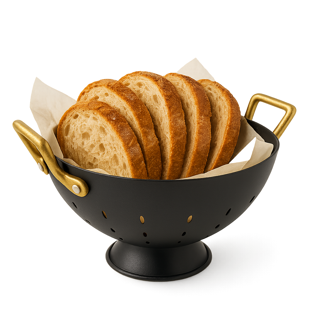 Eğer pirinç detaylardan ziyade tamamen siyah bir görünüm arıyorsanız, kulpsuz ve düz modelimiz olan Yuvarlak Ekmek Sepeti Siyah Statik ürününü inceleyebilirsiniz. Daha farklı bir form için ise Oval Ekmek Sepeti Siyah Statik modelimize göz atabilirsiniz.